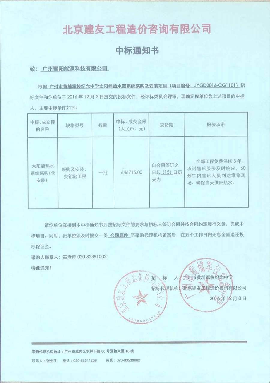 廣州市黃埔軍校紀(jì)念中學(xué)太陽能熱水器系統(tǒng)采購及安裝項(xiàng)目